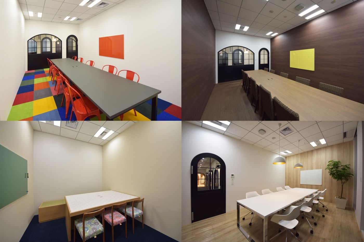 本社の移転プロジェクトに携わらさせていただきました。バザールをコンセプトに来客エリアをデザインしました。各会議室は世界のマーケットからイメージした内装デザインにしており、会議室へと誘う通路スペースは、ウィンドウショッピングができるような街並みを表現しております。メインとなるエントランスは、会議室へとつながる広場になっており、エレベーターホールから一歩踏み出した途端にまるで屋外に出てきたような感覚になるよう、ラフな塗装壁やあえて形の異なったタイルで床と壁でオフィス空間を構成しました。 このマーケット空間から次々と新たな仮想マーケットが生まれていくようなデザイナーズオフィスが完成しました。