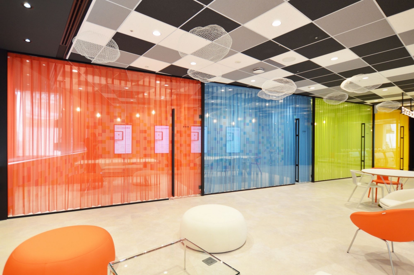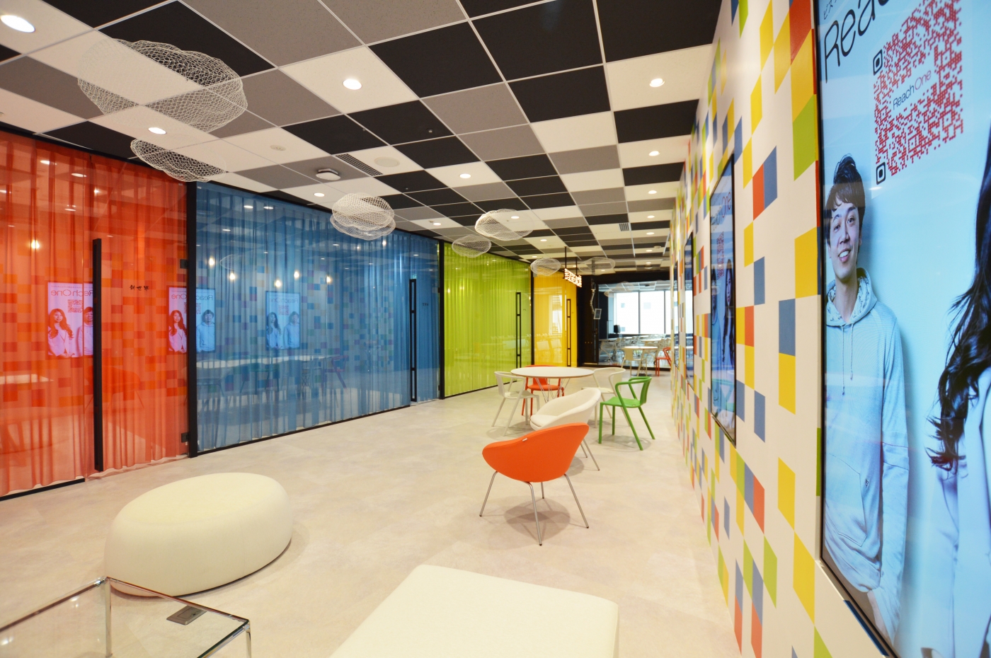 色彩とダイナミックさを兼ね備えたインパクトを重視したオフィス