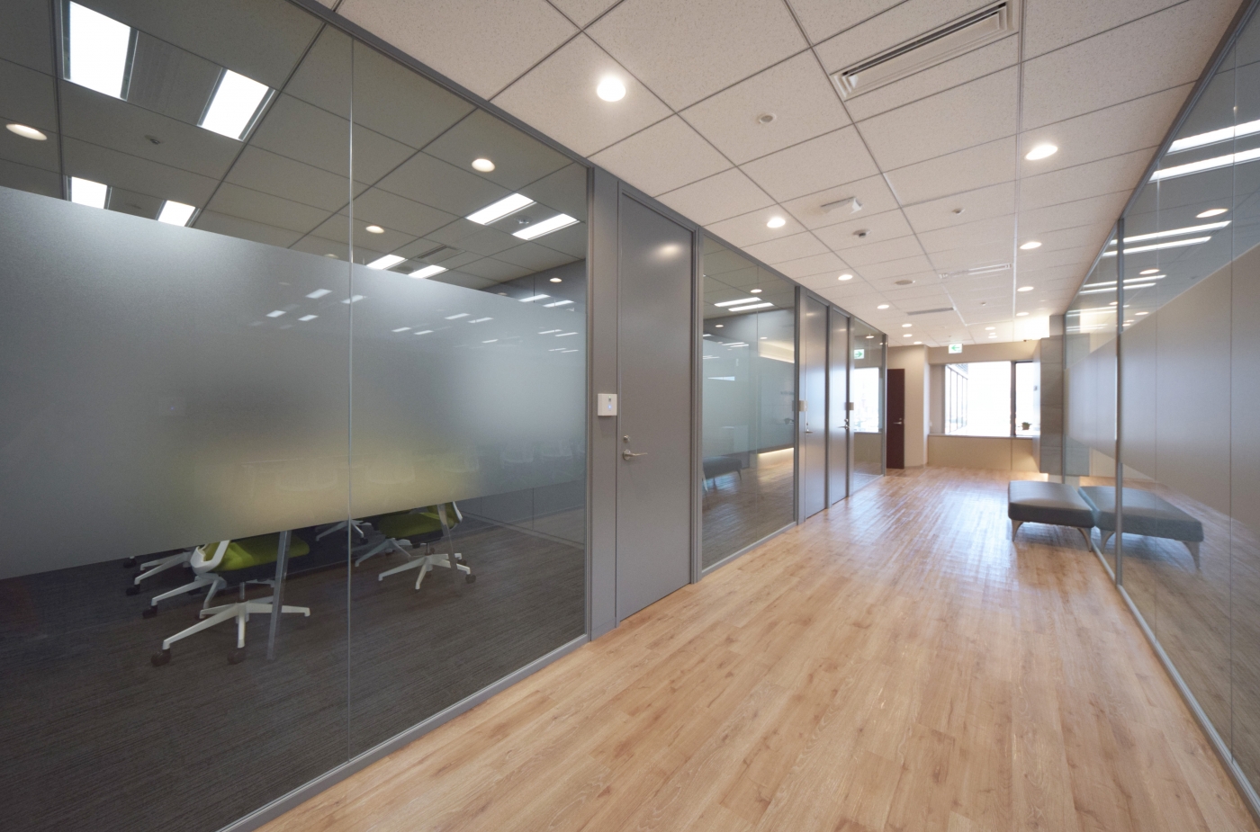 今回は館内増床という機会であり、”次のステップへ進む起点(起源)となる場所”という意を込めて「Genesis Next Place」というコンセプトでオフィスをデザインさせて頂きました。エントランスは、遺伝子を扱う上で重要な信頼感を伝えることができるよう重厚な印象を生み出すタイルを使用しつつ、色味は白とライトグレーを採用し柔らかな印象に。一方で、アクセントでメタリックな素材をデザインに取り入れることで、先進さやクリーンさ、ソリッド感を表現しています。「ホワイトボードをたくさん使って打合せをしたい」というご要望にお応えし、20名収容可能な会議室とワークスペースは壁一面にホワイトボードを取付け、活発なコミュニケーションを促しました。リフレッシュスペースには畳のエリアをつくり、明るい窓から差し込む自然光で気持ちのよい空間を。全体をとおして、社員様にとって居心地の良いオフィスを目指してデザインしました。