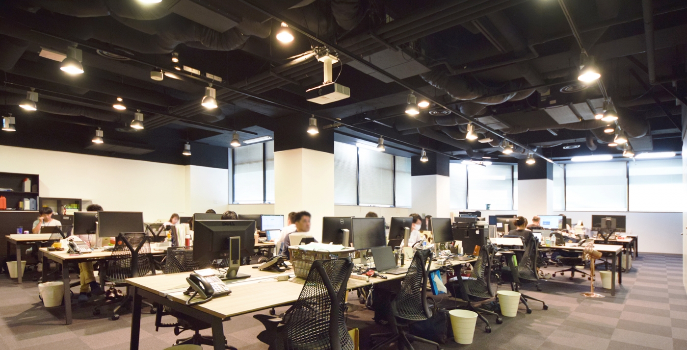 スタイリッシュで落ち着いた空間のエントランスには、特徴的な受付iPad台と、ブラックフレームのガラス張りの会議室が調和し、全体的に洗練されながらも木目を取り入れた柔らかい空間デザインです。 フリースペースはパーケットの床材を敷き、少し照度を落とすことで、カジュアルで居心地の良い空間に。スケルトン天のため、解放感がありスタッフの皆さまが気持ちよく働いて頂けるデザイナーズオフィスとなりました。