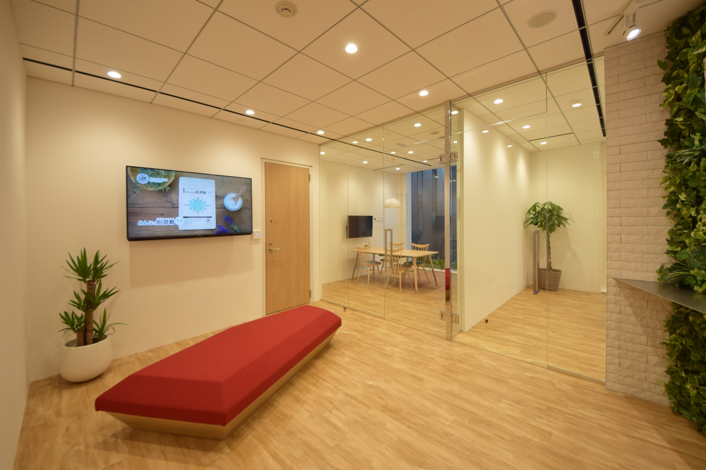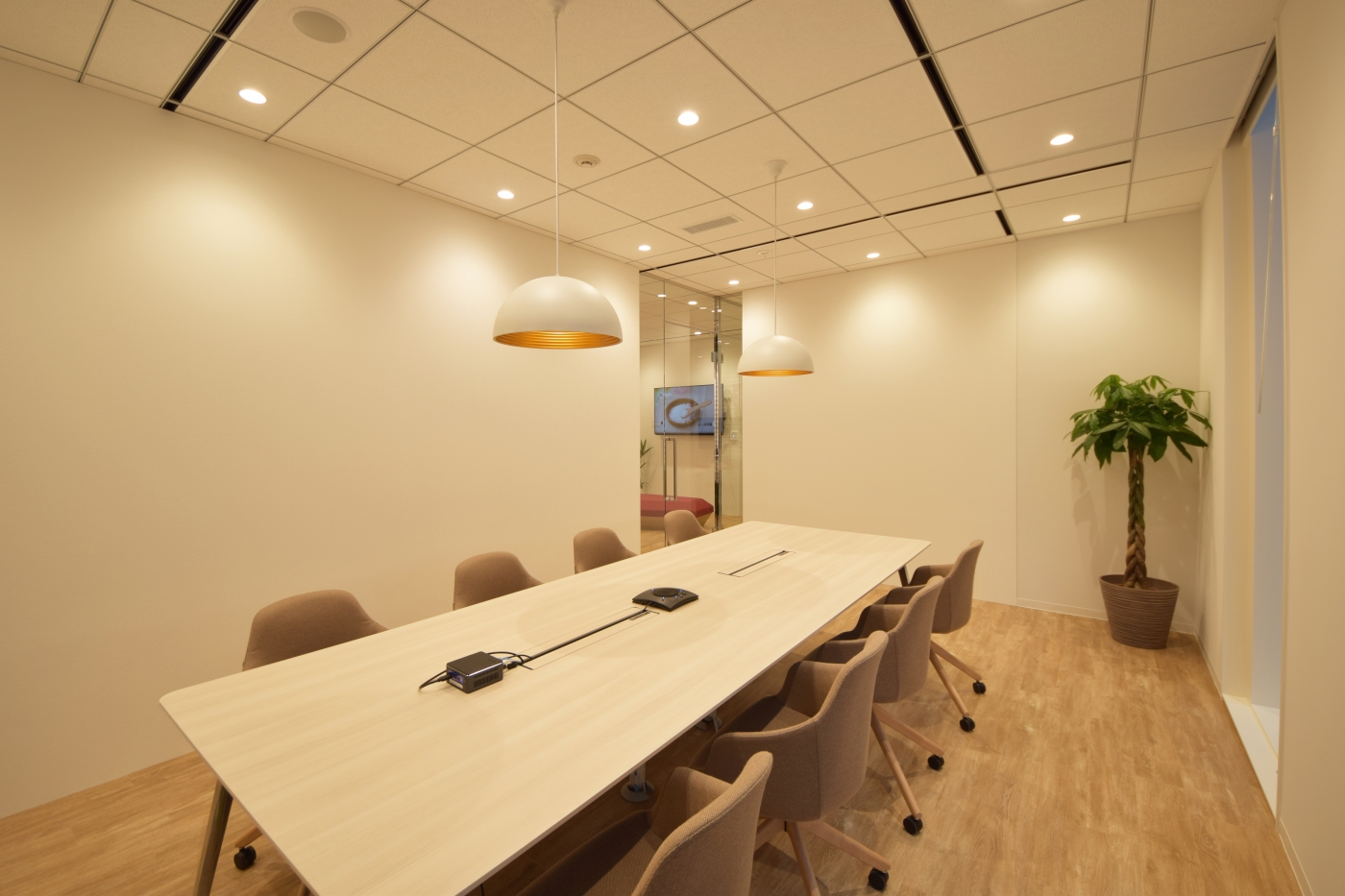 札幌本社に続き東京拠点開設のお手伝いをさせて頂きました。東京にいても札幌本社の雰囲気を感じられるよう、東京オフィスのエントランスは札幌オフィスと同様にタイル・グリーン・スチール・木目をキーワードとして空間を構成しました。デザインキーワードを揃えつつも少し異なるマテリアルを利用することで、札幌オフィスを感じつつも東京オフィスとしての個性も感じられます。会議室も札幌オフィスのデザインを踏襲して木目の床と白い壁を生かしつつ、スペースを広く見せるため各会議室の壁とドアは透明ガラスにしました。会社としての一体感と拠点としての個性を同時に表現した新拠点です。