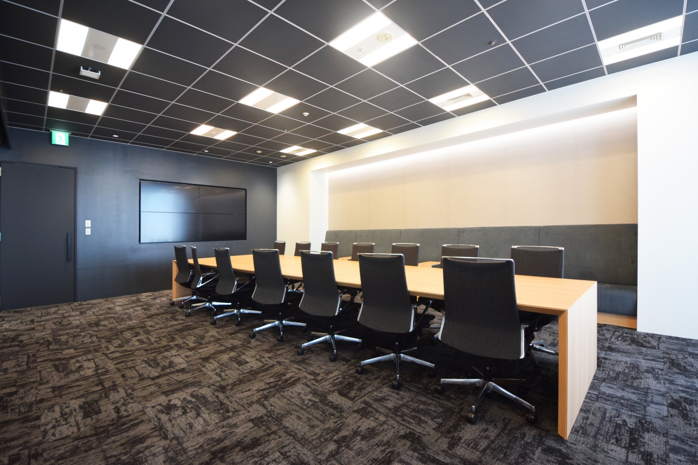 エネルギー業界のリーディングカンパニーとして、洗練された中にも日本を感じられるような和のテイストを入れ込んでデザインしました。各会議室には花の名前を付け、ドアハンドル部分に名前を印字し、さらに壁面を使って在空表示を作るなど、シンプルな中にもこだわったポイントが多数あります。ビルの眺望を生かしつつ、抜け感のある明るいオフィスを作ることを意識し、執務室はパブリックエリアとは対照に木目を基調とした温かさを感じさせ心地よく過ごせる空間になっております。