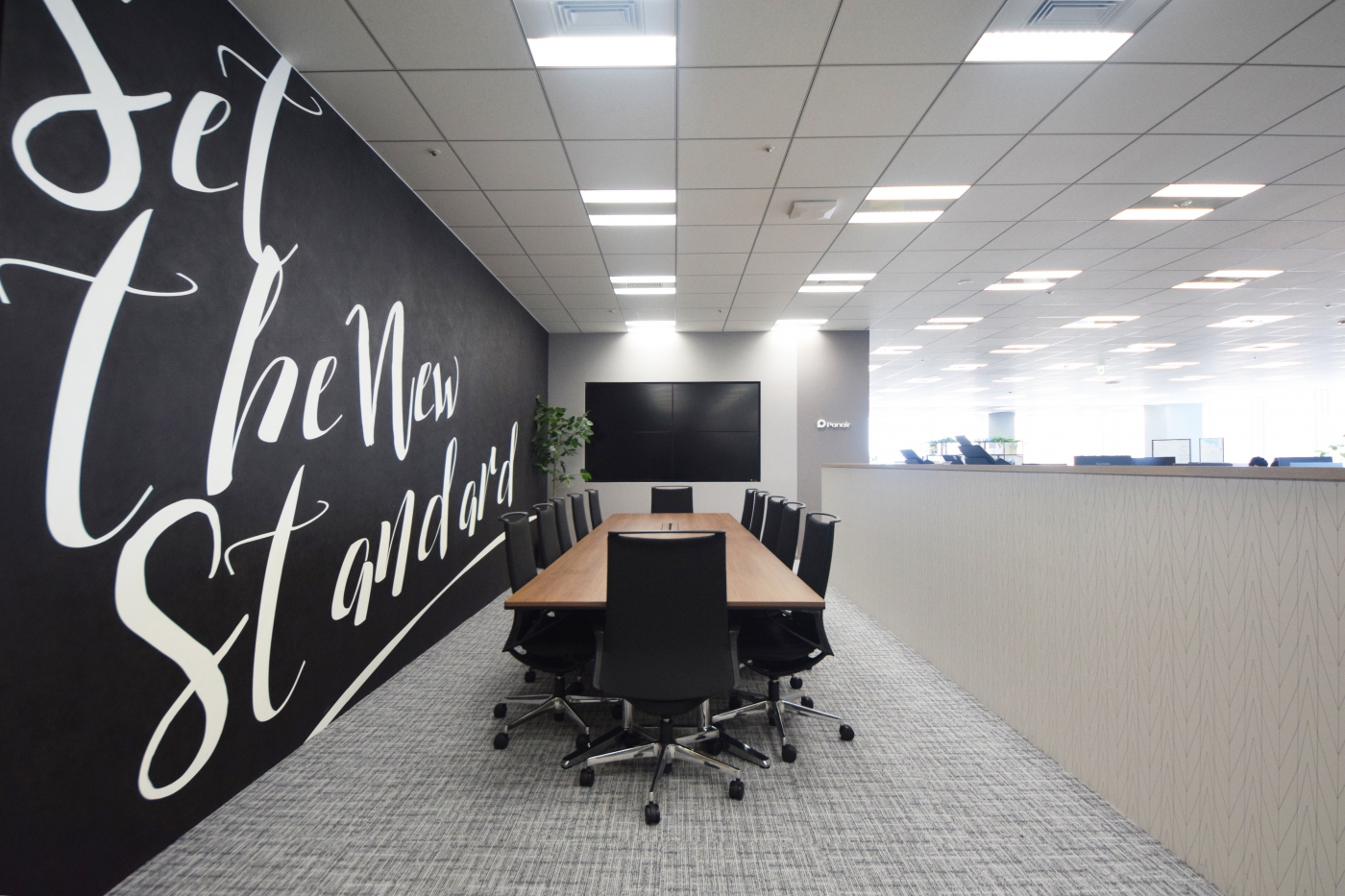 「和」を取り入れたシンプルな空間と、木目の温かさが調和したオフィス