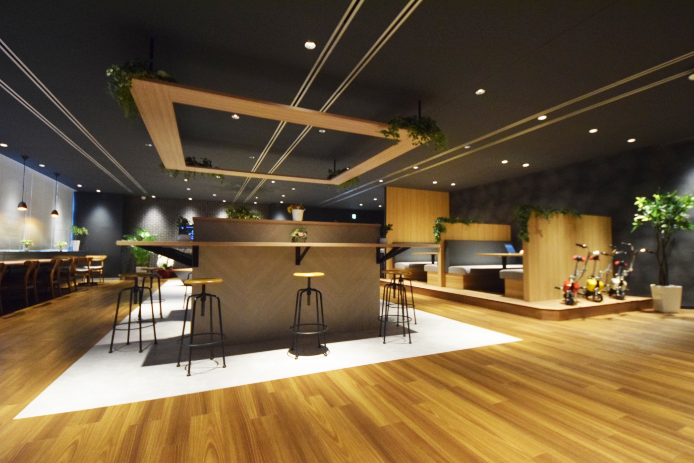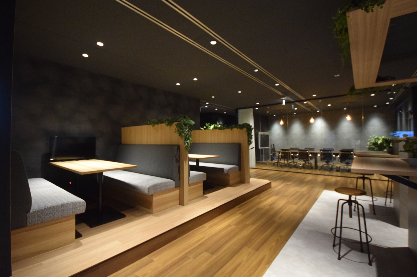 外光の入り方で雰囲気が変化。カフェにもバーにもなるデュアルオフィス