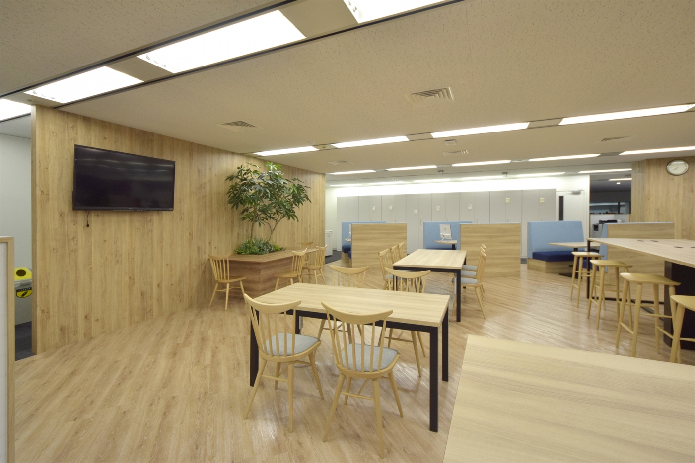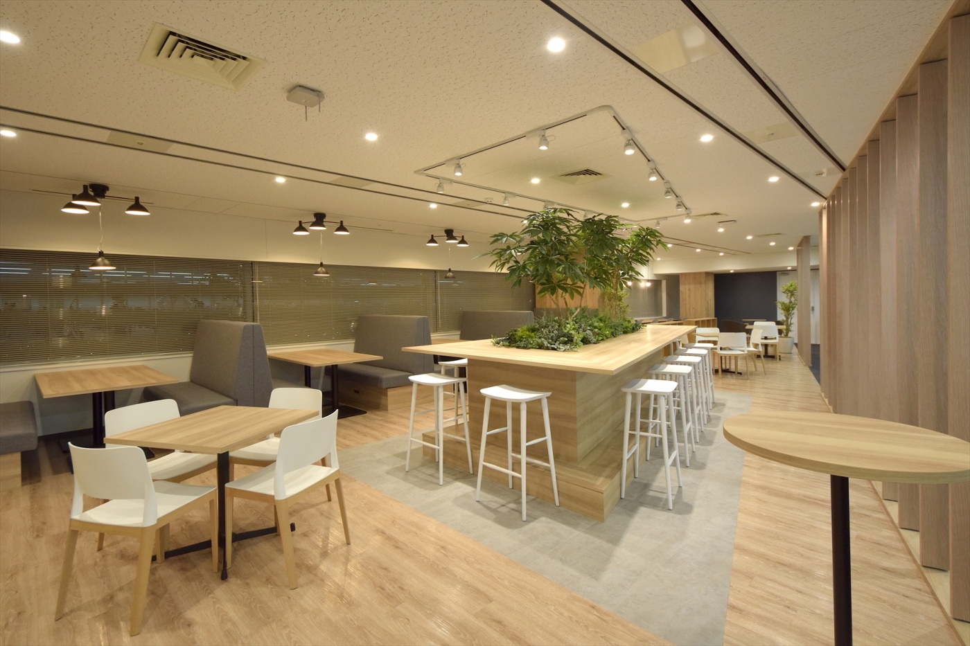 日本オフィス・システム様のフロア増床に携わらせていただきました。緑あふれる木場公園の景色を眺めるビルにオフィスを構えており、コンセプトは「インタラクティブパーク」に。ワークスペース内にコミュニケーションや打合せを活発に行うオープンスペースを設けました。ハイテーブルにソファベンチブース、窓際カウンターテーブルと、まるで公園のどこで遊ぶかを選ぶかように用途にあわせて場所や働き方が選べる空間となっています。従来以上のコミュニケーションと帰属意識の向上が新たなアイデア創出につながっていくオフィス空間が完成しました。