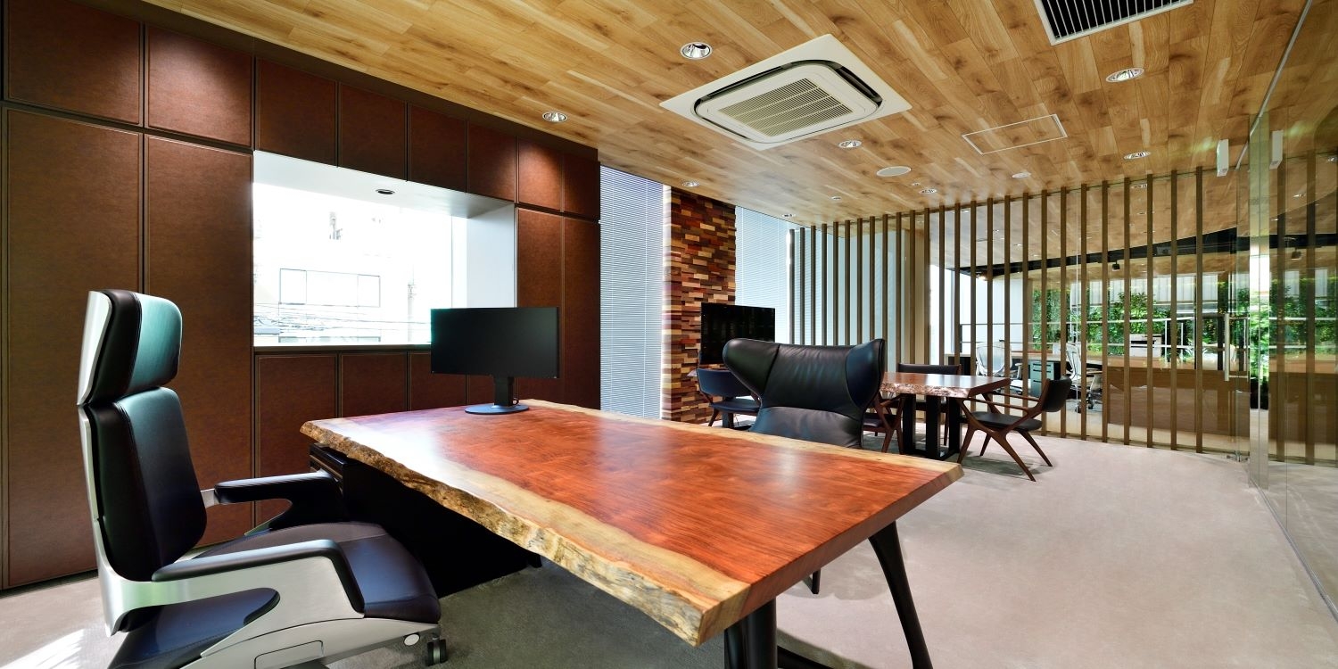 事業拡大に伴う4倍の広さへの館内増床のお手伝いをしました。カルテック様の事業の核である「光触媒」や「自然」を感じることができるようグリーンや木目、曲線をキーワードにデザイン。エントランス兼ショールームにはカルテック様の商品を展示しています。会議室のデスクには天然の一枚木をご用意いただき、より一層空間が引き立ちます。ワークスペースには中央にファミレスブースやパントリーを設けてマグネットスペースとし、コミュニケーションを促進。お客様のご協力の元、細部までこだわりぬいたオフィスが完成いたしました。