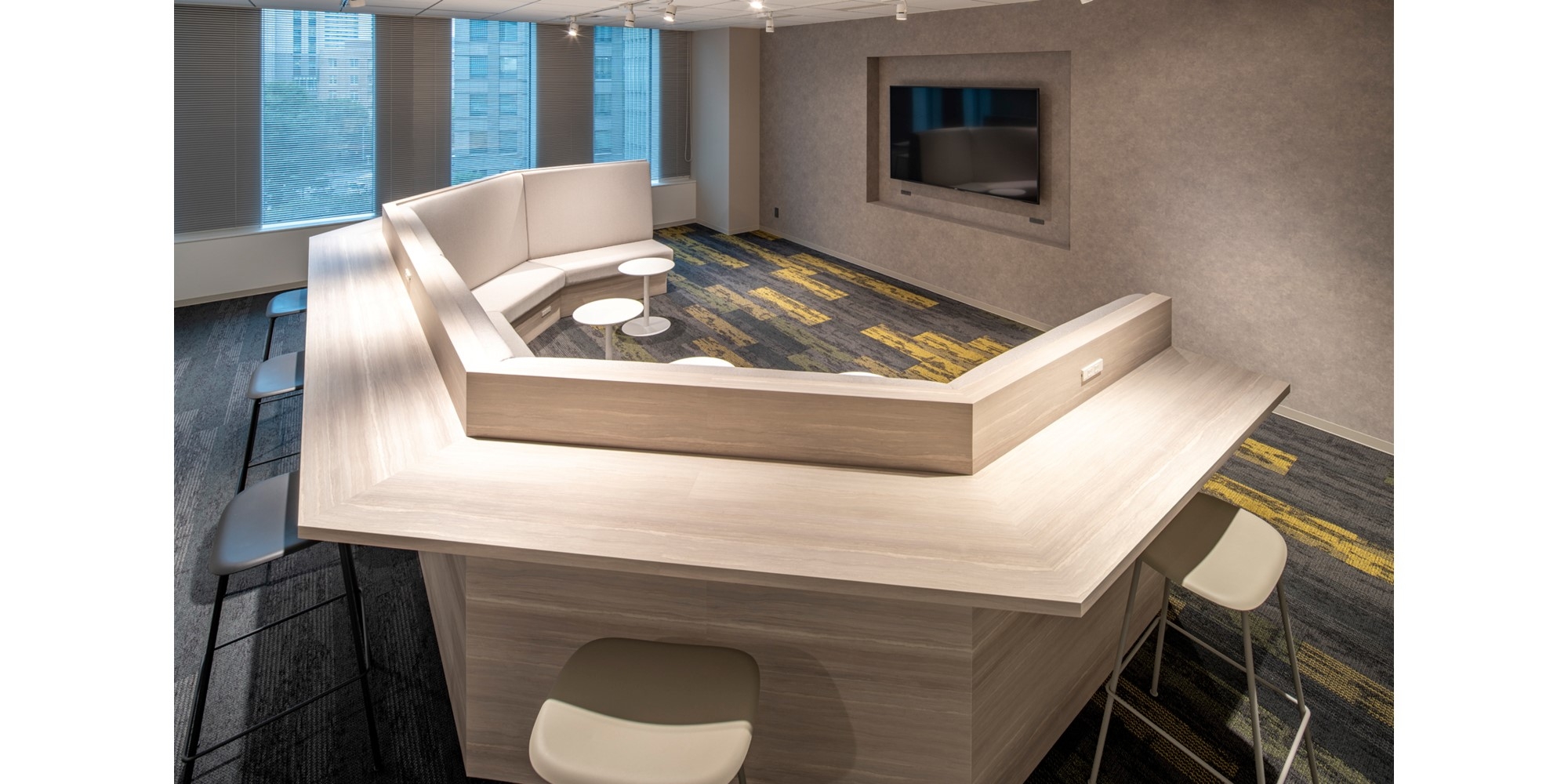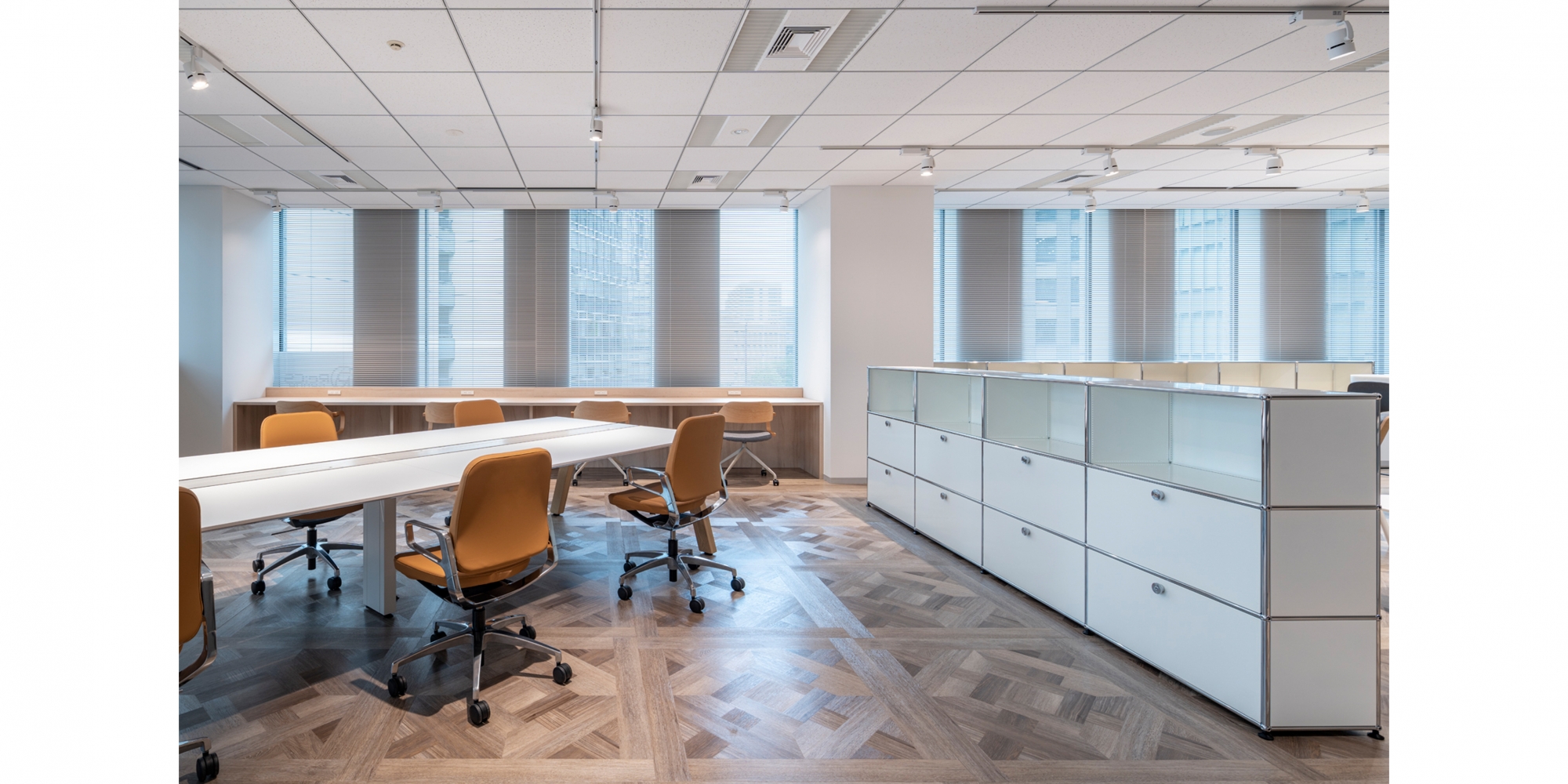 リマテックグループ様の3社統合移転のお手伝いをしました。リモートワークでも業務が進められる現状において、「出社したくなるオフィス」「イノベーションが起こる仕掛けや空間」を実現したいというご要望をいただき、オフィスを設計しました。完全フリーアドレスのレイアウトで、働き方やミーティングに合わせて場所を選択できるよう、カウンターデスク、カフェスペース、集中ブース、ファミレスブース、セミナールームなどさまざまなエリアを用意。一つひとつの素材・家具にも一切妥協しない、こだわりのオフィス空間となりました。