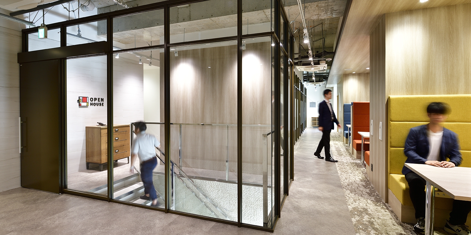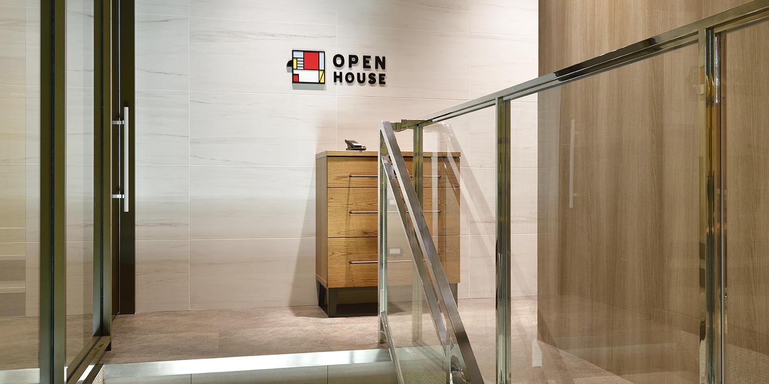 西宮営業センター開設プロジェクト。兵庫・西宮エリアへの初出店として、大通り沿いのガラス面が大きい建物の特徴を活かしブランドを訴求できるデザインを考えました。外観は、家の入口である「門」から着想し、左右と上部にオープンハウス様カラーであるモンドリアンカラーを取り入れました。窓側には接客ブースごとに異なるカラーのロールスクリーンを設置。多様なカラーを取り入れつつも全体のバランスは保ち、オープンハウス様の店舗であることを認知しやすいよう演出しました。室内は3.5m超の天井高を活かし、開放感を感じられる空間を目指しました。来店した方に親しみを感じていただけるよう、打合せエリア毎にカラーコーディネートを変更し、明るい木目を採用。毎回新鮮な気持ちで打合せをしていただけます。さらに目が届くエリアにキッズスペースを配置し、安心感も担保しました。新たな生活空間をご提案するオープンハウス様らしい店舗となっています。