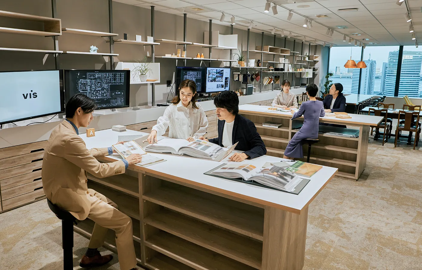 今まで培ってきた知見や実績と、プログラミングで分析したデータやシミュレーションをもとに、クライアントごとに異なる課題や要望、将来像を追求し、ワークプレイスを構築していきます。ヴィスのプロジェクトマネージャーやクリエイター、コンストラクションマネージャーが一貫してサポートすることで、お客様に最適化されたワークデザインを実現します。