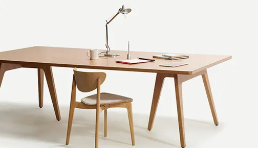 木部に国産木材を100%使用したテーブル、デスクとオフィスアイテム、組み合わせて使えるようデザインしたプロダクトを開発しました。はたらきやすさと環境の両方に配慮したオフィス家具シリーズです。