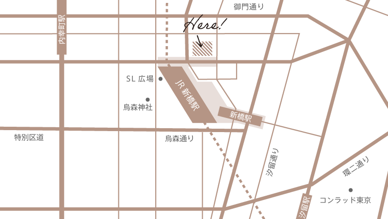 交通:新橋駅JR各線、東京メトロ銀座線、都営浅草線、ゆりかもめ