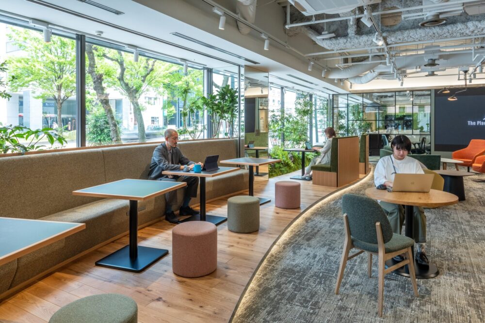 The Place 名古屋では、シェアオフィス3部屋とワークラウンジを完備。 オンライン会議に対応した完全個室や集中ブースなどもあり、ハイブリッドワークが実現できます。 ワークラウンジには大型LEDモニターも設置しており …