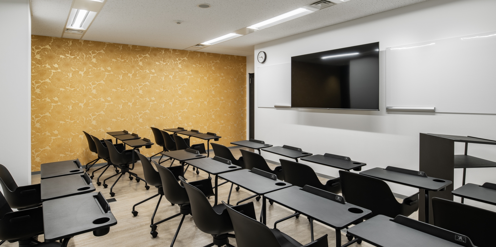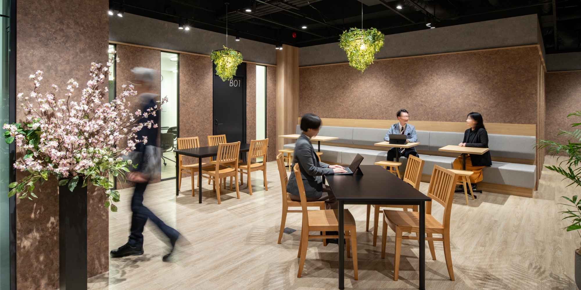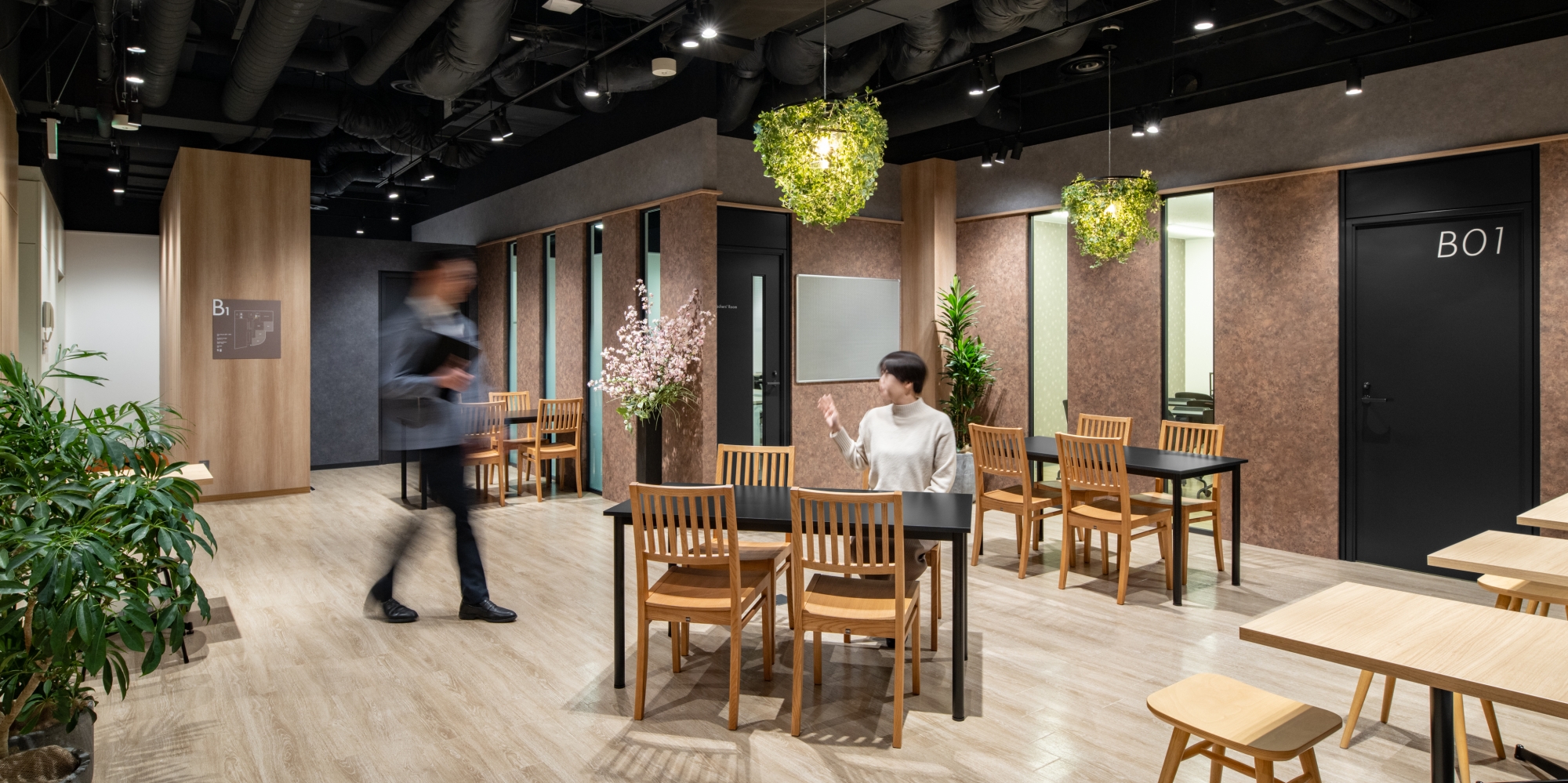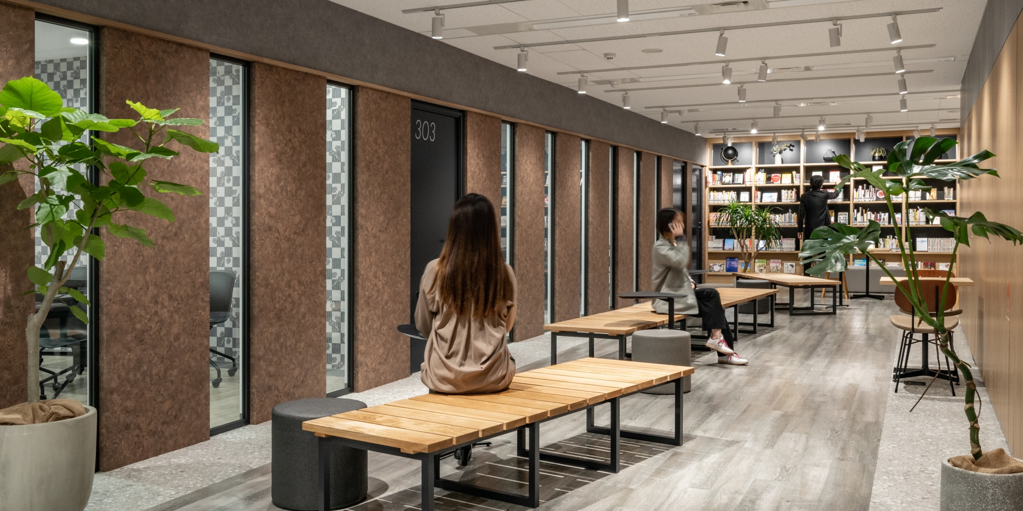 全国にさまざまな学校を構える企業の、キャリア学生向けに新設された渋谷校を設計しました。他の校舎に比べて学生の年齢層が高いため、新しいデザイン性を模索したプロジェクトです。コンセプトは「IDOBATA」。学生と講師のコミュニケーションを大切にしており、日本古来からインフォーマルコミュニケーションを生む場所として根付いている「井戸端」のような空間を目指しました。学生同士、学生と講師の対話が自然に生まれるよう、井戸端にちなんだタッチポイントをデザインしています。インテリアデザインは、留学生が日本文化を感じながら学べるよう、日本の四季を植栽で表現。教室ごとに異なる柄をしつらえ、日本らしさを感じられる遊び心も取り入れています。キャリア年齢層の学生に合わせ、落ち着いた印象に仕上げました。
