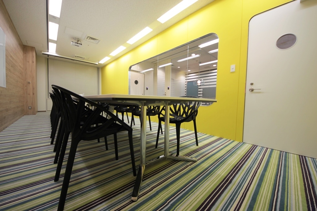 企業ブランディングをデザインに反映し、採用効率と業務効率を最大化できるようなクリエイティブオフィスを作りたい。そんな思いのもと、オフィスプランニングを行いました。エントランスは、社名がそのまま電話台になったオリジナルの受付電話台が大きなインパクトを与えます。パブリックスペースとワークスペースには、楽しさやポップさを感じさせるテーマパークのような鮮やかな配色に。あえて不規則に壁・床・家具を並べ、エントランスから開放感のある視界を確保しつつ、偶発的な交流を生む動線のレイアウト設計となっております。来訪者に絶大なインパクトを与え、社員一人ひとりの個性、そして想像力に刺激を与えるクリエイティブオフィスとなりました。