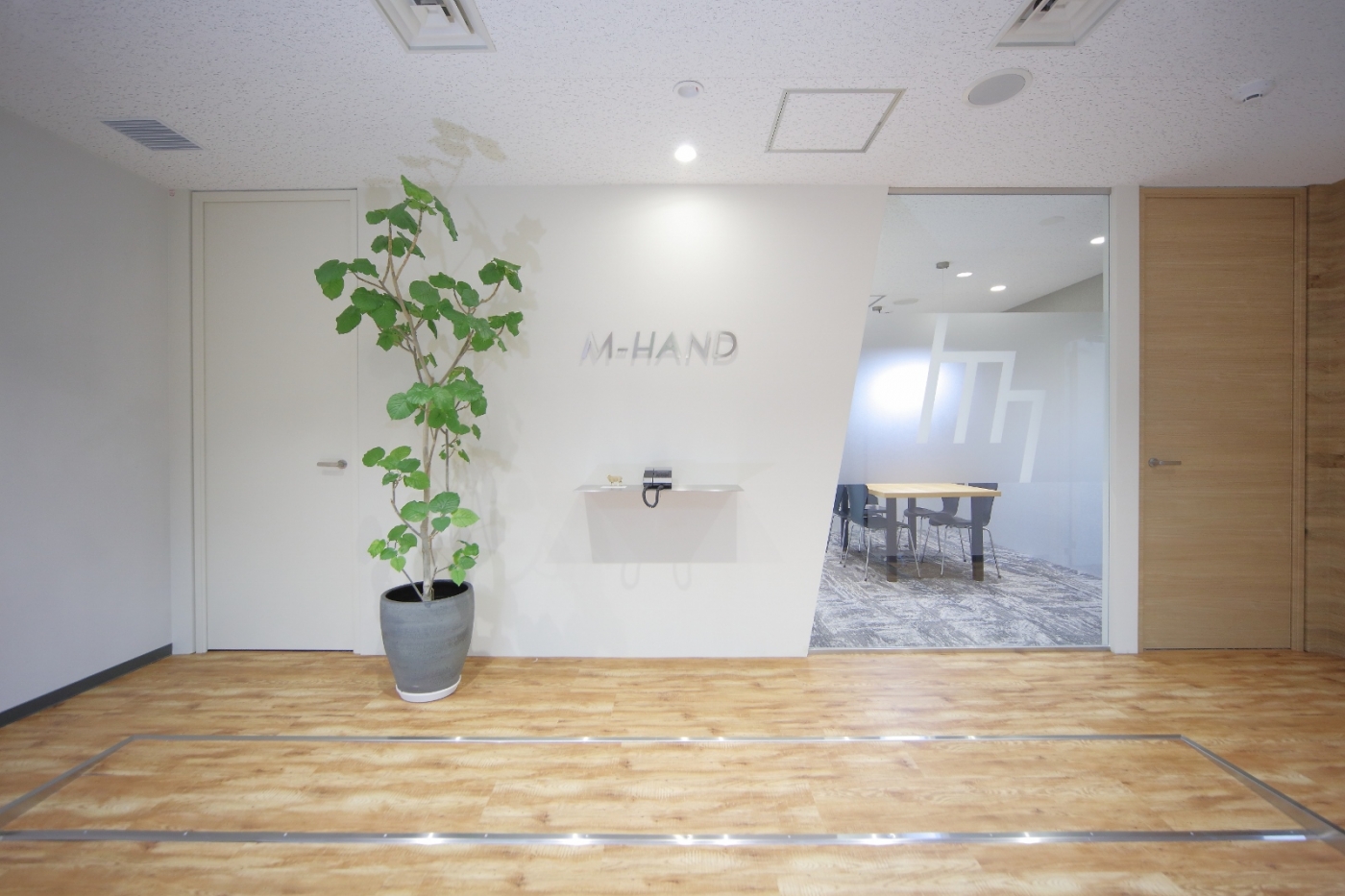 エントランスは以前のオフィスから大きな変化を付けず、明るく透明感が光るナチュラルな空間で、ご来客者さまやスタッフの方にこれまでと同じようにエムハンド様を感じて頂けるようにしました。一方エントランスから続くミーティングルームは、力強いイメージになるよう色味や柄などを加えてギャップを感じるようにデザインしています。またリフレッシュスペースは、スタッフの方々がしっかりと休息を取る事ができて、自然とコミュニケーションが発生するよう、ナチュラルで暖かな空間に仕上げました。それぞれのスペースでイメージが全く異なり、空間のコントラストを感じるオフィスができあがりました。
