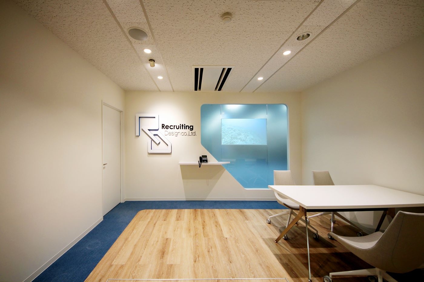 これまで別々のフロアにあった部門をワンフロアに統合し、コミュニケーションの活発化と、業務効率の向上をめざすとともに、よりリクルーティングに有効なオフィスデザインの実現に取り組みました。 スタッフフロアと来客フロアのエントランスは、同コンセプト異デザインで構築。同社がもつ「明るく爽やかで潔く、そしてスマートである」イメージを、ホワイトベースの空間と、素材感が特徴的なナチュラルウッドのマテリアル、閉塞感をなくすガラス、アクセントで差し込んだコーポレートカラーのブルーで、空間に表現しました。 ワークスペースにはすべて無垢材のワークデスクを採用。各会議室は別々のデザインイメージを配し、一つ一つの空間により愛着とコンセプトを感じてもらえるように、工夫いたしました。