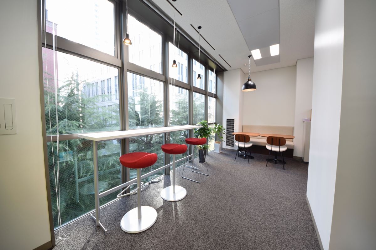 「働いているスタッフがワクワクするような場所。和気あいあいと働ける安らぎと居心地の良い環境。訪れる人が驚きを抱き、スタッフが自慢できるようなオフィスを」という社長の想いから、『革新的なサービスが生まれる場所=ガレージ』をコンセプトにデザインしました。エキスパンドメタルを大胆に使用し、遊び心がありながらもクールで引き締まったエントランス。サインの影がとても印象的でさらに上質なイメージを演出しています。カーテン越しの会議室は色のトーンをそれぞれ変え、木目調の床とテーブルであたたかみのある空間となっています。これからのクルマ業界を担うスタート地点となるようなガレージ風オフィスに仕上がりました。