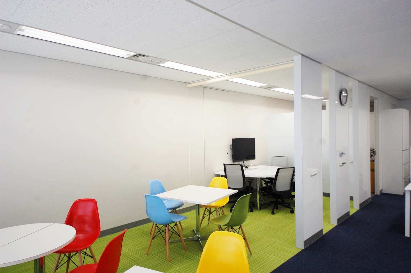 実績と展望。過去と未来。伝統と革新。そして、確証と予感。 伝統を感じさせる重厚な木目のCPUチップは、積み上げてきた実績と信頼の証。彼方まで続く光のラインや、ガラスやタイルの硬質な輝きが、企業の永続性と先進性を象徴しています。 エントランスの裏には、オリジナルテーブルを始め、白で統一した会議室を配置。気品溢れる設えとなっています。 ワークスペースには、エンジニアの方達がクリエイティブに働ける様々な仕掛けを凝縮しました。ライブラリー付きのリフレッシュエリア、チーム単位で働けるコワーキングスペース、PCを持って気軽に集まれる立ちミーティングスペース、自席から振り返ればすぐに打合せができるデスクレイアウトとホワイトボード天板のテーブル、そして、壁面ホワイトボード等―。 確固たる実績に裏打ちされた企業が、新たな次元へと昇華する為に相応しい舞台が誕生しました。