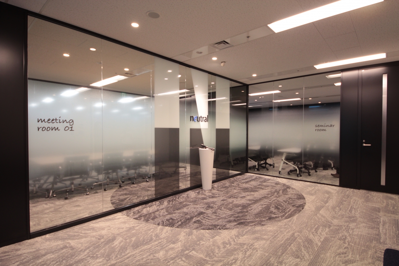 コンセプトを“リクルーティング・デザイン”とし、ニュートラルを創ってきた人にもこれからのニュートラルを創っていく人にも誇りを持ってもらいたいという想いを込めました。企業HPやロゴマークのイメージを空間に反映させ、“ニュートラルのオフィスで働く”という価値を高めるデザインです。自然光がたっぷり入り開放感のあるエントランスは、来客するすべての人々を魅了します。開放的なリフレッシュスペースを設けることで、社員同士のコミュニケーションが活発になり、“自分の会社を好きになるキッカケ”をオフィス空間で感じてもらえるようになりました。