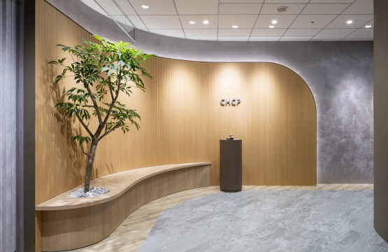 限られたスペースの中で、集中して働ける場と社員様の交流が図れる場をいかにレイアウトするかを意識しました。スペース効率を考えワークスペースとリフレッシュの床材をあえて同じにする事で全体的につながりと広がりを表現しています。リフレッシュスペースにはアクセントとしてラグとペンダントに差し色を入れる事で、空間自体にメリハリを持たせております。様々なマテリアルを使う事で各部屋にメリハリを出し、レイアウトでデザインをリンクさせた空間に仕上がっています。