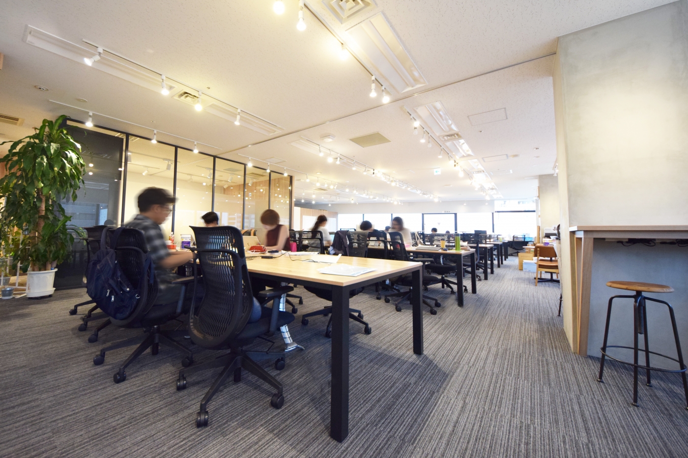 日々めまぐるしく変化を遂げているデジタル領域にて、パートナー様の期待に応えるために変化や挑戦心を大事にされている皆様を体現できるようなオフィスをデザインしました。エントランスを入ってすぐの象徴的なカフェカウンターは様々な方とのコミュニケーションの場、窓際のカウンター席は一人集中して仕事のできる空間、見晴らしの良い床上げスペースはリラックスしてお仕事やミーテイングができる空間等、多様な働き方に柔軟に取り組める空間となりました。