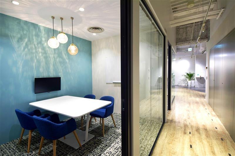DESIGN デザイン 社名を変更されたタイミングでのオフィス移転をお手伝いしました。コーポレートカラーであるティール色のグラデーションを各会議室の壁や集中スペースに取り入れることで、シンプルな空間にアクセントを出しました。ワークスペース内にはゆったり座れるファミレス席や集中スペースを設置して癒しの空間にし、様々なコミュニケーションスペースを設けて社内コミュニケーションを促すなどの工夫をしています。