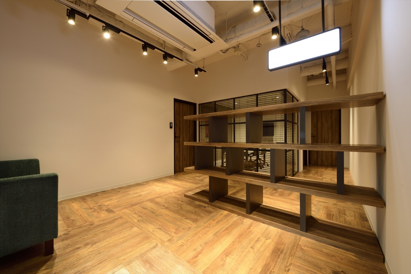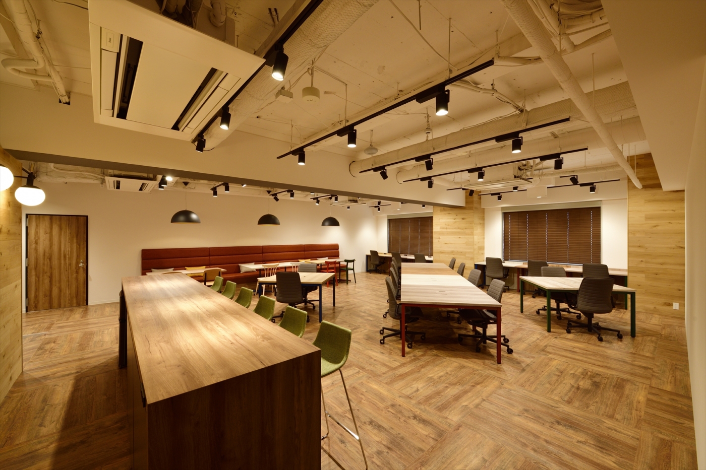 セットアップオフィスに入居する企業の成長に寄り添い、入居する企業を育む「grows+」を大きなコンセプトとし、フェーズに合わせた空間の提供を目指しました。「hut」「class」「college」「campus」と企業規模や想定坪数によりテーマを決め、本町コラボビルは「hut」としてスタートアップ企業向けのセットアップオフィスを提案いたしました。個々の存在を表現する様々な素材やカラーを空間に配置し、ウッドを多用することでスタートアップ企業の繁栄促進に花を添えてくれるような、温かな空間演出を心がけています。