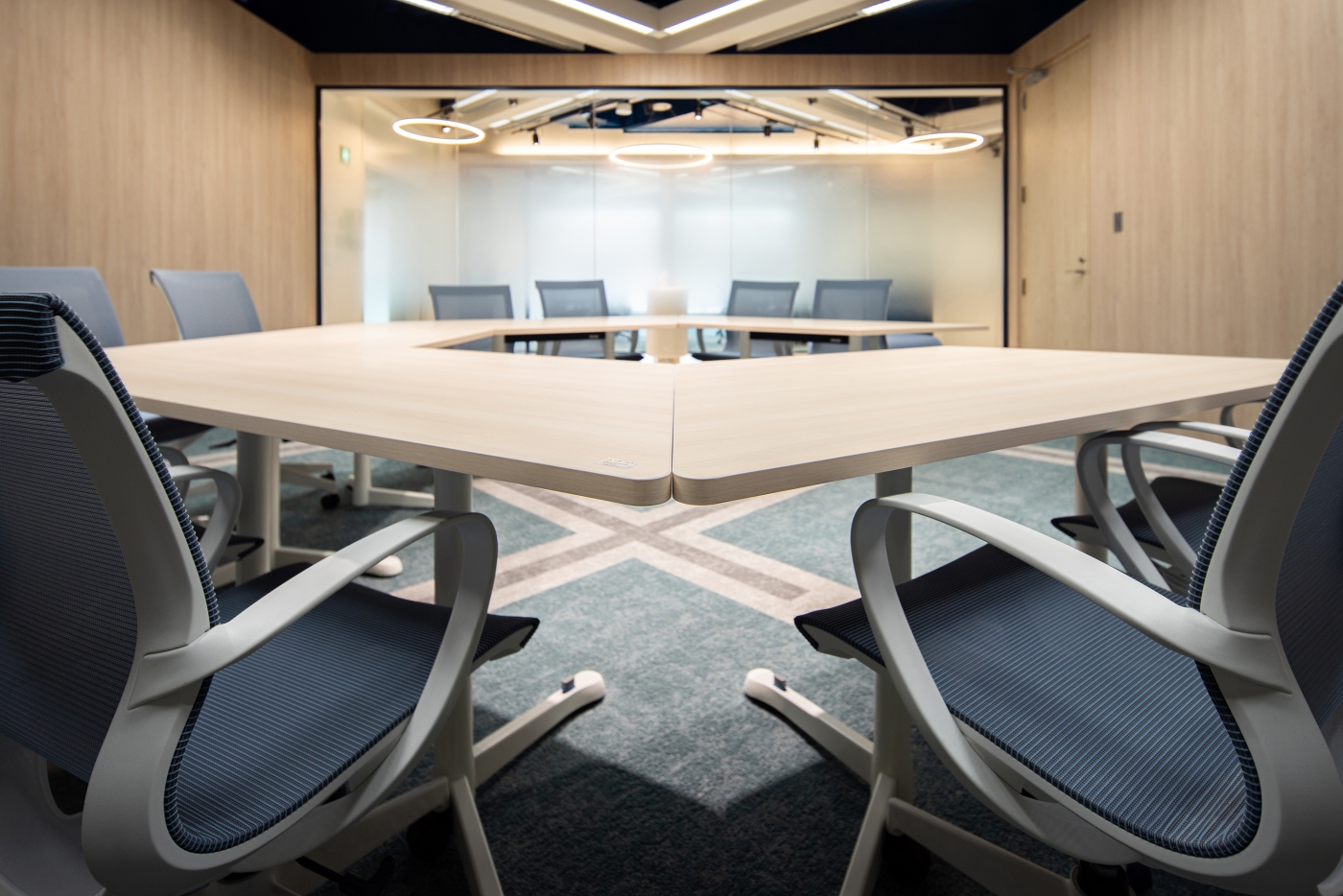 事業拡大に伴う拡大移転。働く環境の快適性向上や拡張性を意識したオフィス作りをリクエストしていただきました。オフィスビルの立地、ビル自体がスケルトン天井であること等、デザインをする前から素晴らしい環境が整っていたので、その環境を活かしたデザインをすることも一つのポイントでした。働き方が多様化する中、単なる拡張性ではなく社員の皆様がリフレッシュや仕事を複合的にできるフリースペースを区画の中で一番良いエリアに設け、快適性を高めました。また、オフィスコンセプトは『LINK UP』とし、オフィス環境において様々なものを結びつける意味合いを設けました。働き方の多様性(将来へのつながり)、社員同士のコミュニケーション、個々のナレッジ共有など、企業の成長を後押しする想いが込められています。