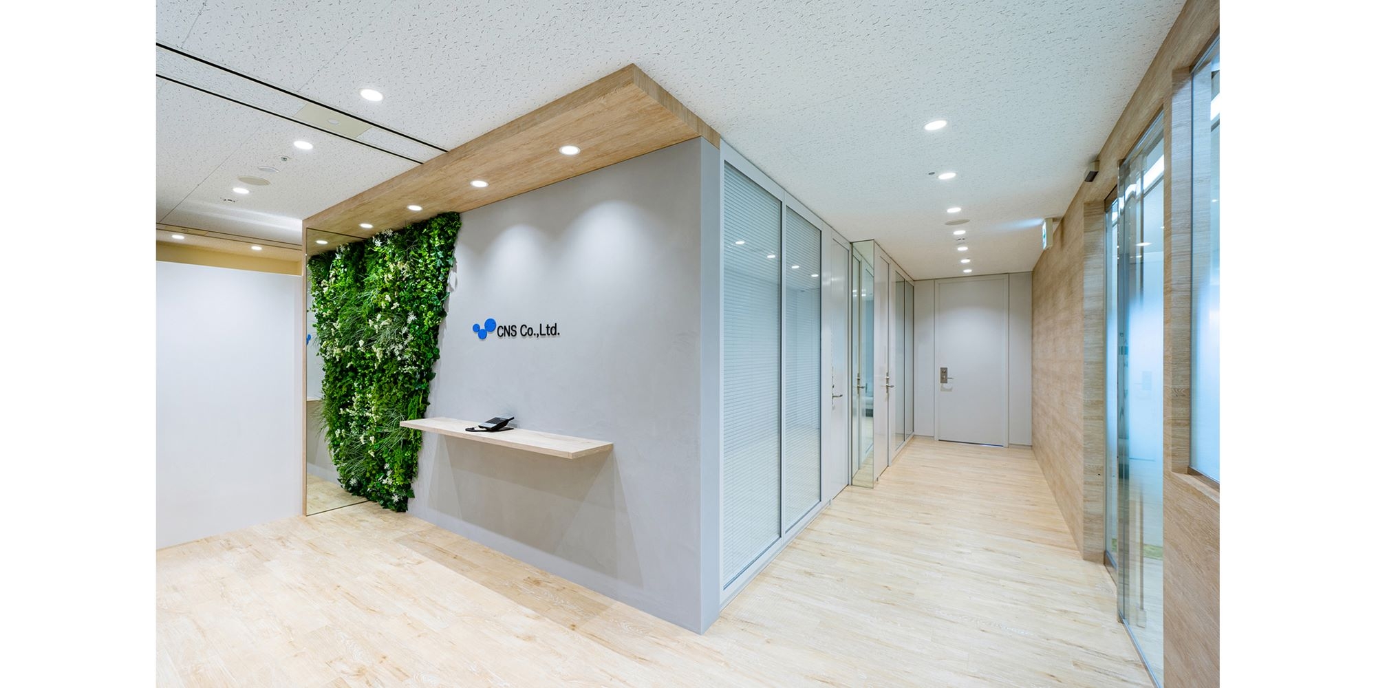 テレワークが定着する中、今まで固定席で働いていた環境を一新し、フリーアドレスを導入する改装プロジェクトをお手伝いさせていただきました。部署で席を分けるのではなく、仕事内容に応じてその日働く家具や空間を選ぶ働き方に変革しました。コミュニケーションのレベルを数段階に分けながらも、仕切りをなくし、開けた空間にしております。エントランスは木目とグリーンウォールで温かみのあるデザインにし、ガラスを取り入れることで開放感を演出しました。